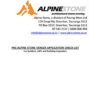Where council signoff is required a “PRE-ALPINE STONE VENEER APPLICATION CHECKLIST” must be completed by an LBP, before an approved installer can begin.  Form is located in the “Technical and Installation Manual” and also above to download separately.
